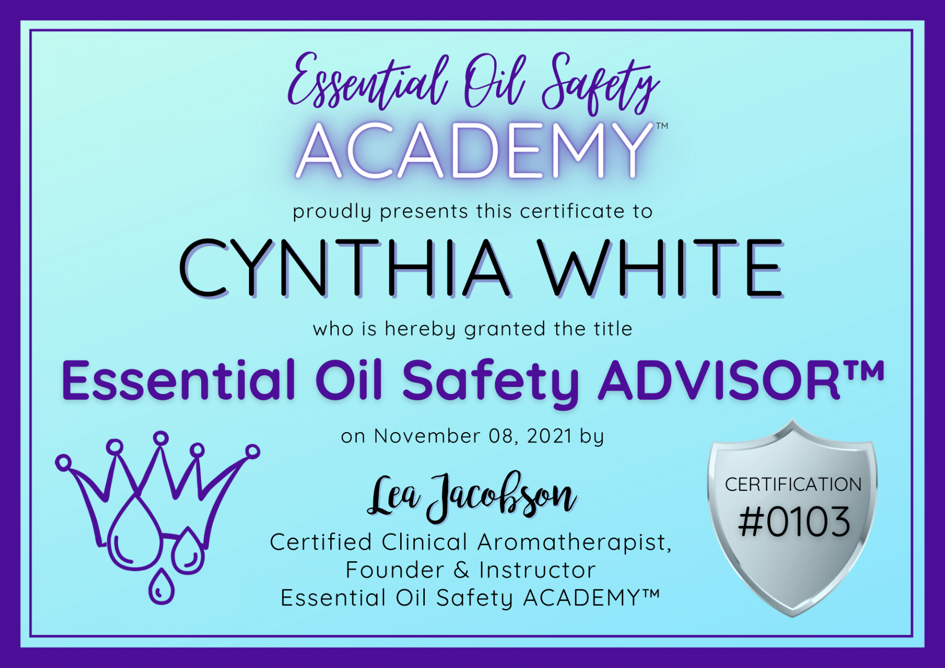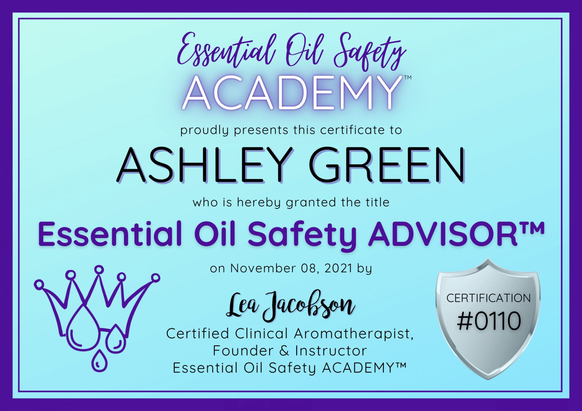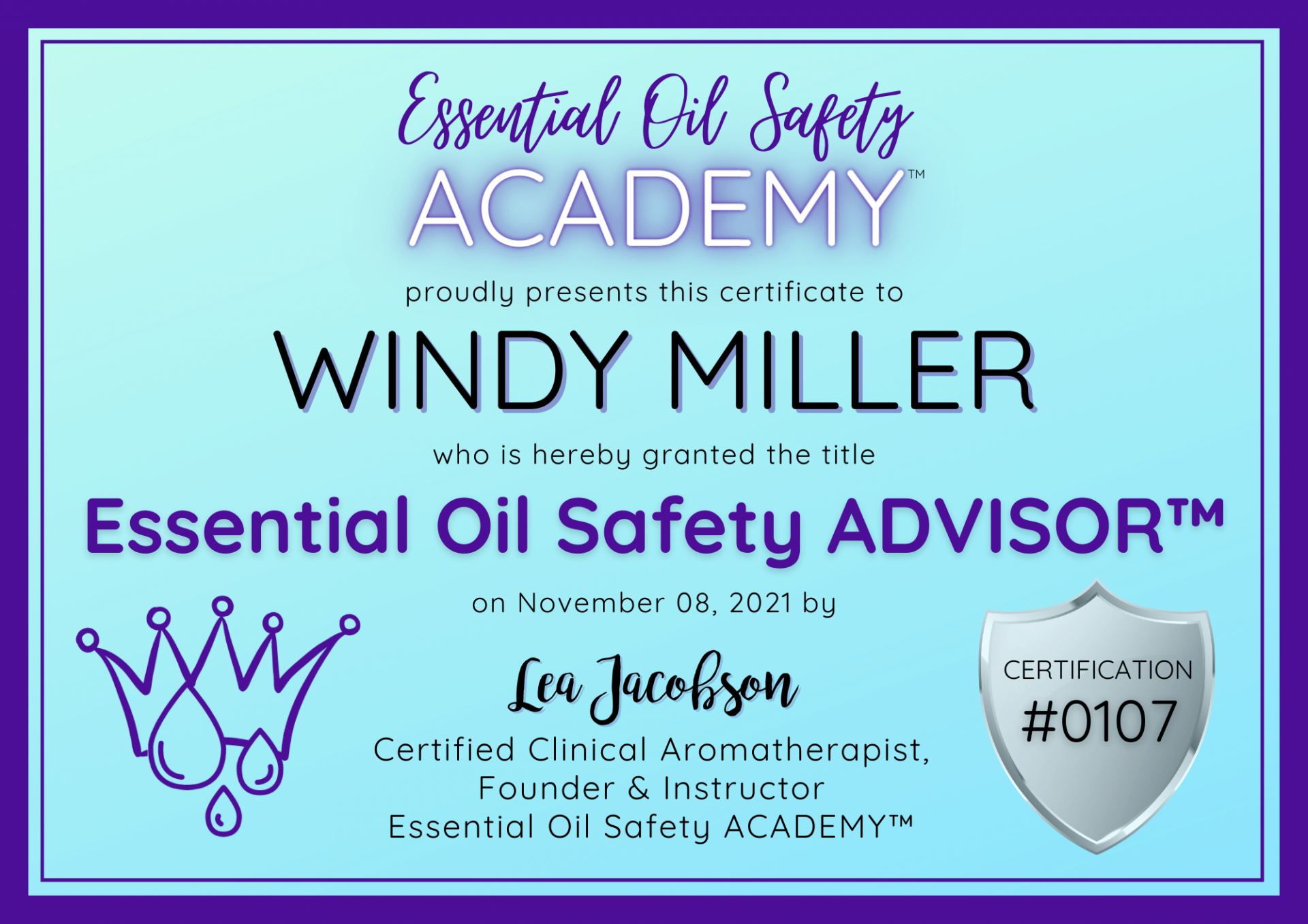 See someone online using the Essential Oil Safety ADVISOR™ title? Verify authenticity by viewing the list below...