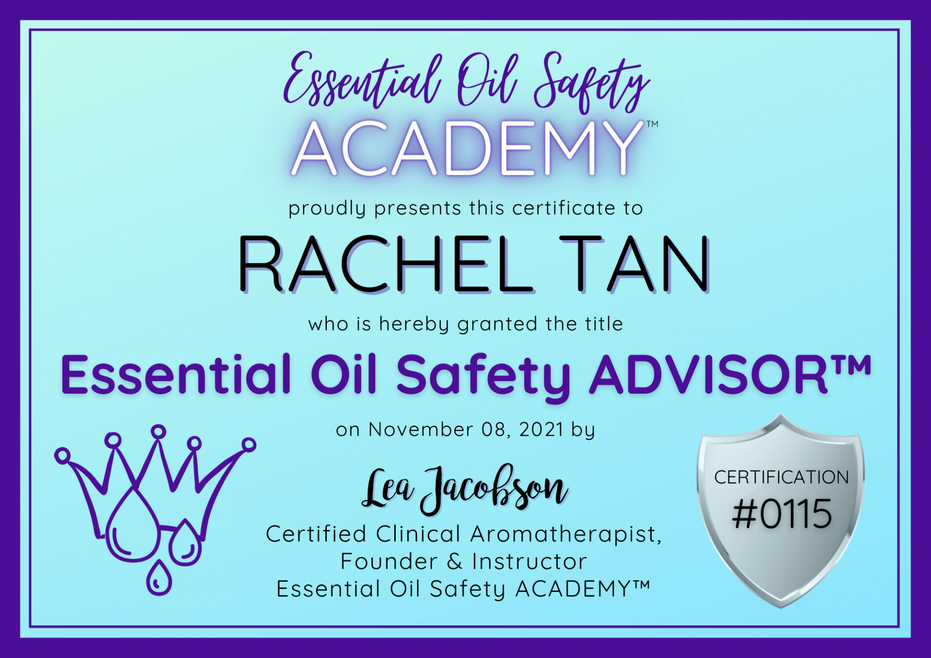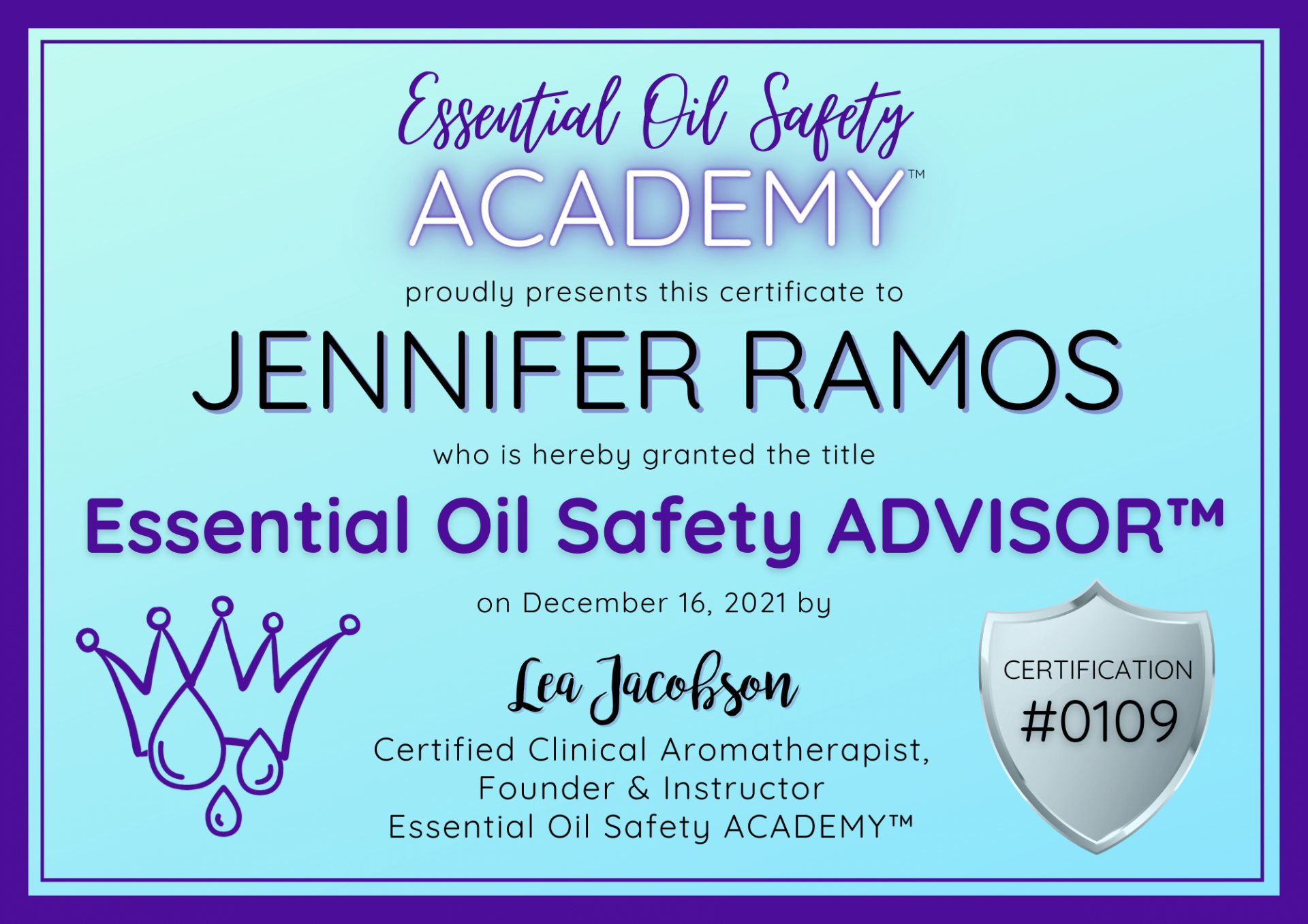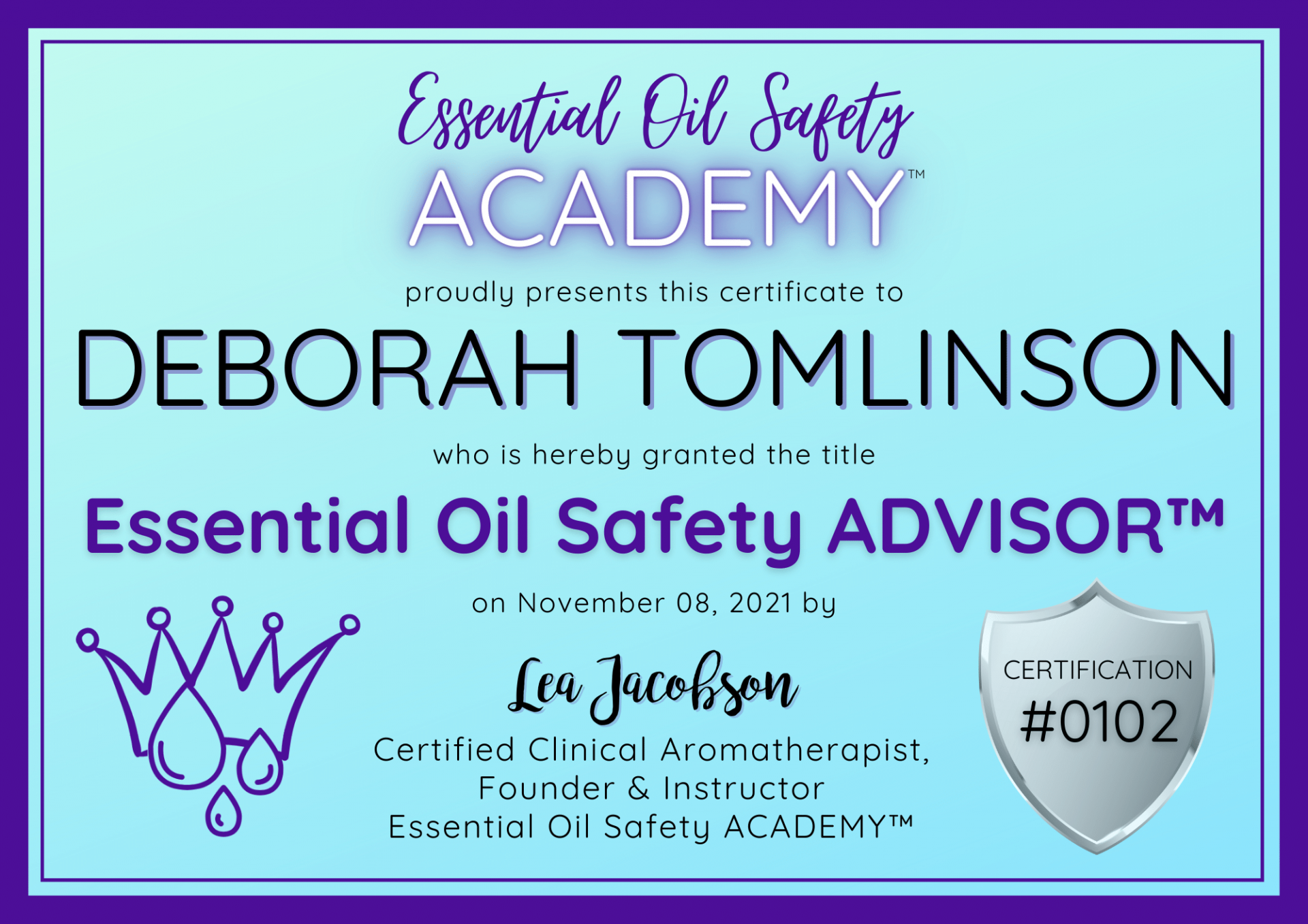 See someone online using the Essential Oil Safety ADVISOR™ title? Verify authenticity by viewing the list below...